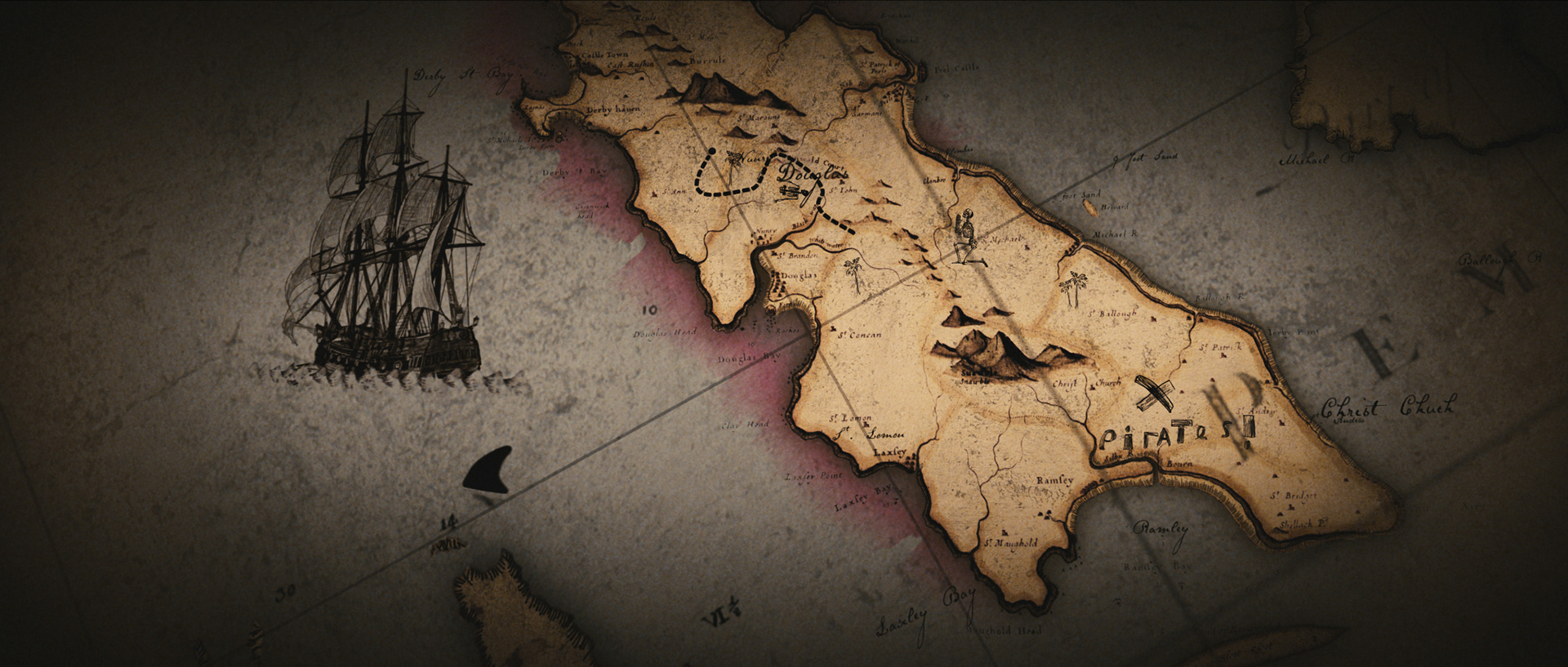 Rushes was asked to create several elements: An opening title sequence, a main title sting, 4 shot transitions, 5 still graphics and a lengthy, 4 part sequence playing on the Google earth application all referencing the plot line of buried treasure, whilst trying to incorporate a little of the St. T’s girl’s anarchy. The idea gradually developed, and became a coherent and evolving set of graphics which sits in neatly throughout the film; starting with the opening titles and moving through to the final shot transitions.